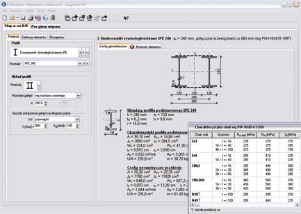 Program Kalkulator Elementów Stalo- wych służy do projektowania różnych rodzajów elementów stalowych pojedynczych i wielogałęziowych: słupów, belek walcowanych i pełnościennych, płatwi, prętów kratownic, itp. Wbudowane są bazy kilkudziesięciu profili walcowanych i spawanych. Można wykonać obliczenia dla przypadków wymiarowania podanych w normie stalowej z uwzględnieniem wyboczenia, zwichrzenia i niestateczności miejscowej.